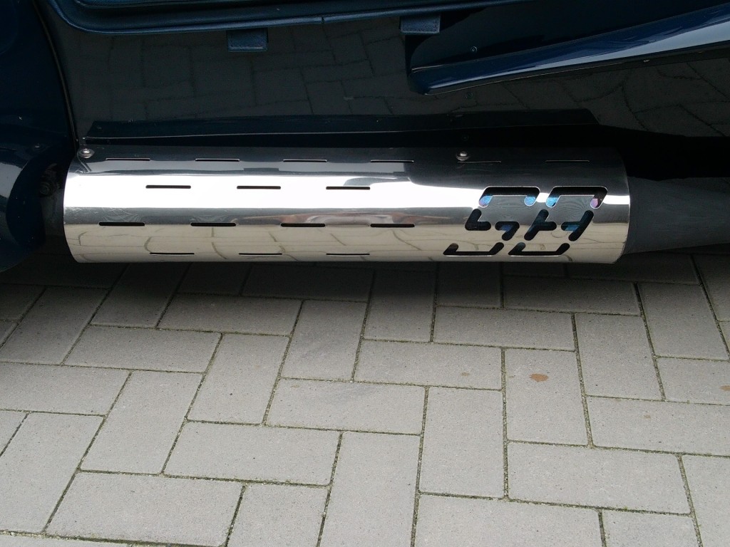 De auto is uitgevoerd in donkerblauw met een rood interieur, wat zeer mooi contrasteert. Het lakwerk is nog netjes en er worden geen sporen van roest of schade aangetroffen. Ook het chroomwerk, de verlichting en de ruiten bevinden zich in nette staat. De prominente roestvrij stalen uitlaat waarin de naam van het model is gegraveerd blinkt uitzonderlijk mooi. Ook de 5-spaaks 14” lichtmetalen velgen verkeren in een zeer nette staat. Kenmerkend zijn de robuuste rollbar en het reservewiel aan de achterzijde.
