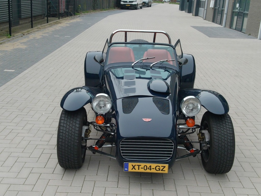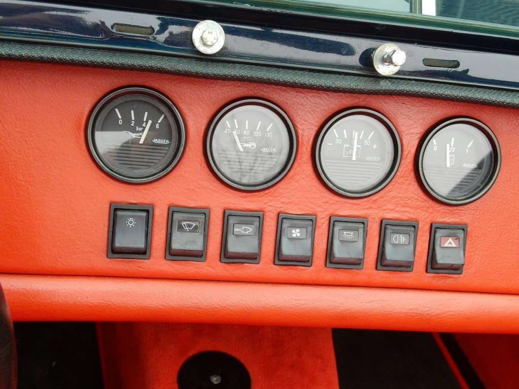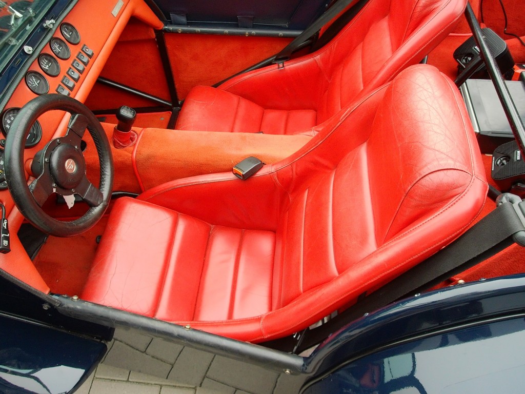 Ook het interieur bevindt zich in nette staat zonder beschadigingen, slechts lichte gebruikssporen van de met leder bekleedde stoelen. Het met leder bekleedde dashboard biedt plaats aan 4 centraal geplaatste tellers. 7 centraal geplaatste knoppen en twee grote tellers zijn geplaatst recht voor de bestuurder. Overzichtelijk en geen overdadigheid zoals het motto van Donkervoort betaamt: “No Compromise”. De softtop Tonneau cover, deurtjes, tapijtset en het overige interieur: alles bevindt zich in een nette en onbeschadigde staat. Achter de voorstoelen zijn een radio/cd speller met speakers gemonteerd.